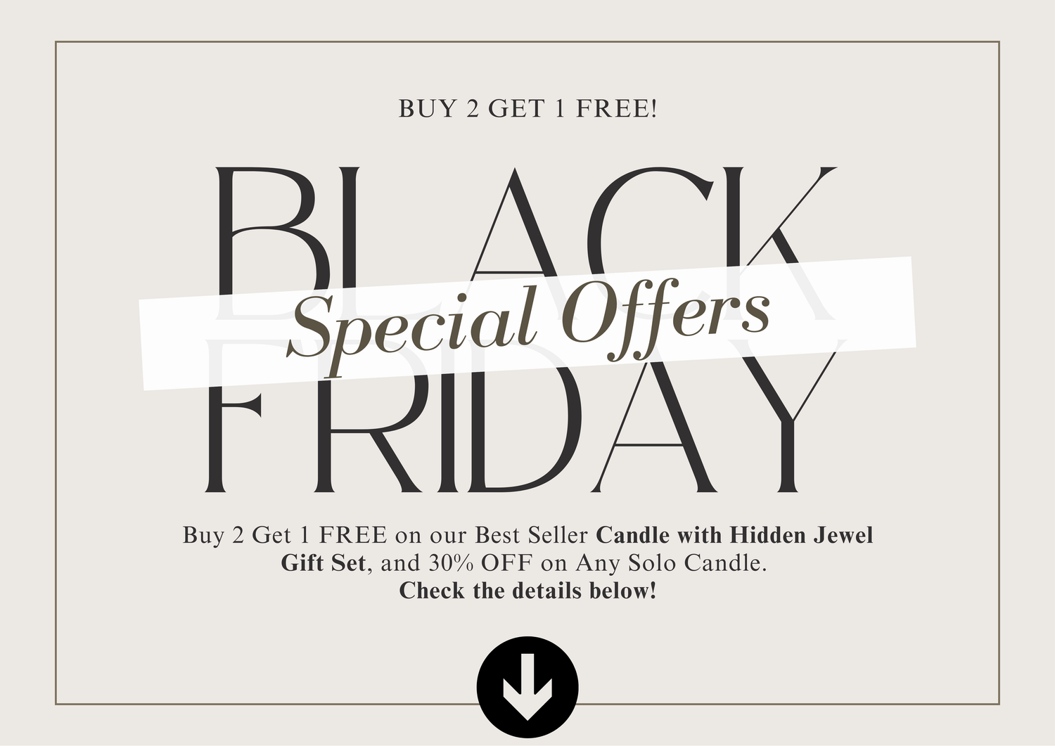 OFFER 5 - 35% OFF our beloved Classic Individual Candles (without jewel). Bring the essence of luxury into your home anytime you desire. Choose between two exclusive scents: Golden Blossom or Sandalwood, both rich, elegant, and unforgettable.